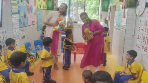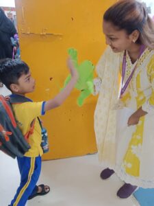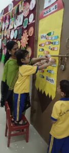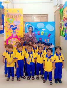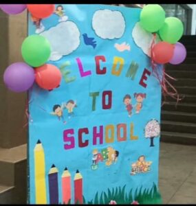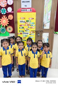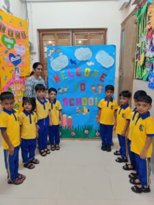 The new academic year 2025-26 of our pre primary students started with a bang with kids and teachers all geared up with a search of enthusiasm and excitement to interact with each other. Our children were all geared up to display the name cards with their photos pasted on it.